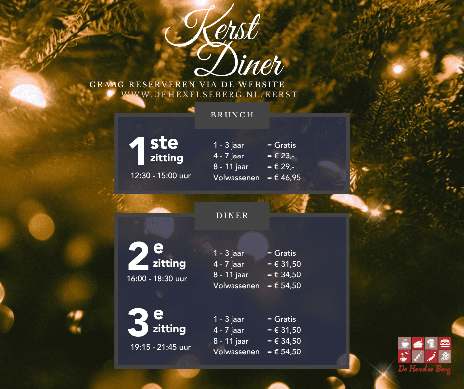Voor een zorgeloze Kerst raden we aan om te reserveren via ons online systeem. Let op; alleen 2,5 uur arrangement mogelijk.